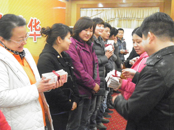 股東大會(huì)的第一個(gè)高潮出現(xiàn)在年度分紅現(xiàn)場(chǎng),一年的辛苦耕作,換來(lái)沉甸甸的收獲;所有錦華股東的臉上,洋溢著幸福的笑容!