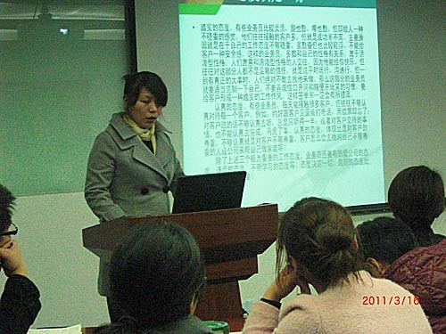 優(yōu)秀市場(chǎng)部經(jīng)理陶玲為新員工分享“如何贏得客戶”的營(yíng)銷(xiāo)培訓(xùn)