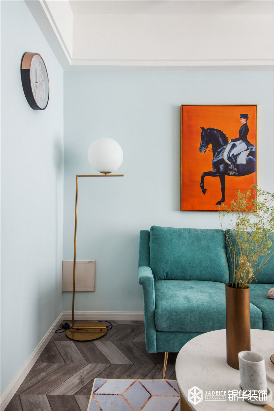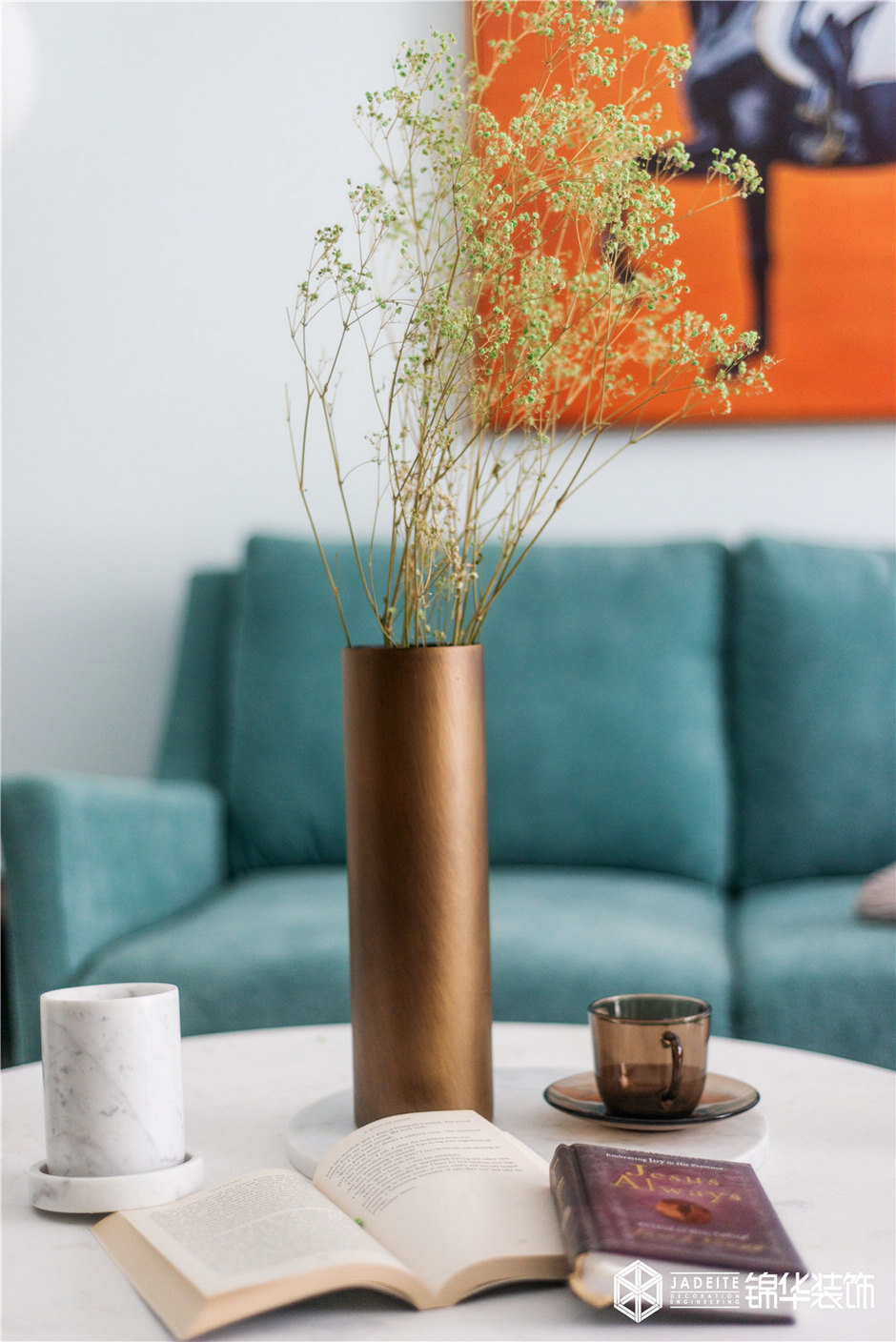 ▲因面積有限,所以客廳統(tǒng)一采用小體積家具,避免視線上的壓抑。不同顏色、材質(zhì)、造型的和諧碰撞,使得空間更立體,更有層次關(guān)系。
