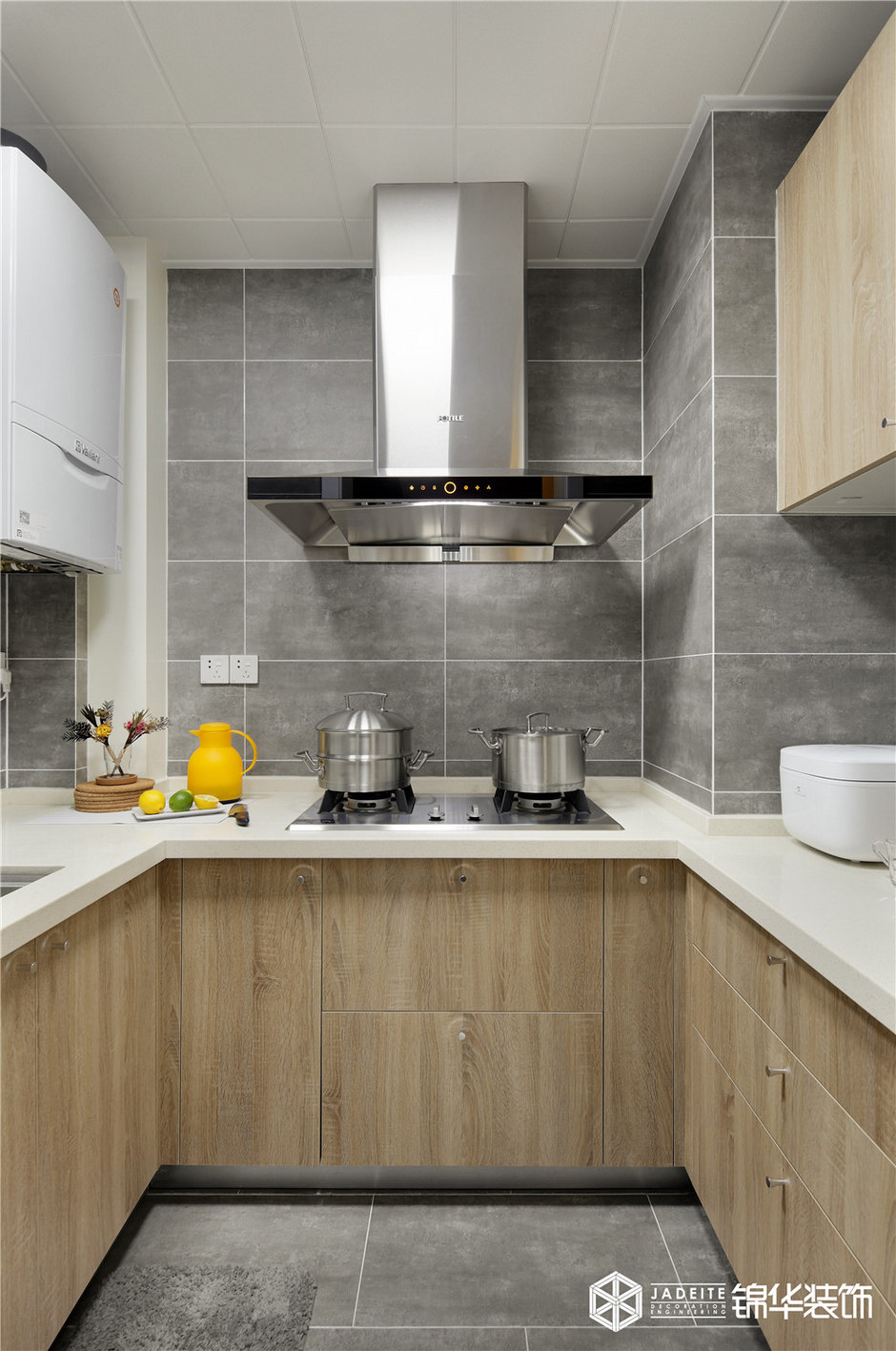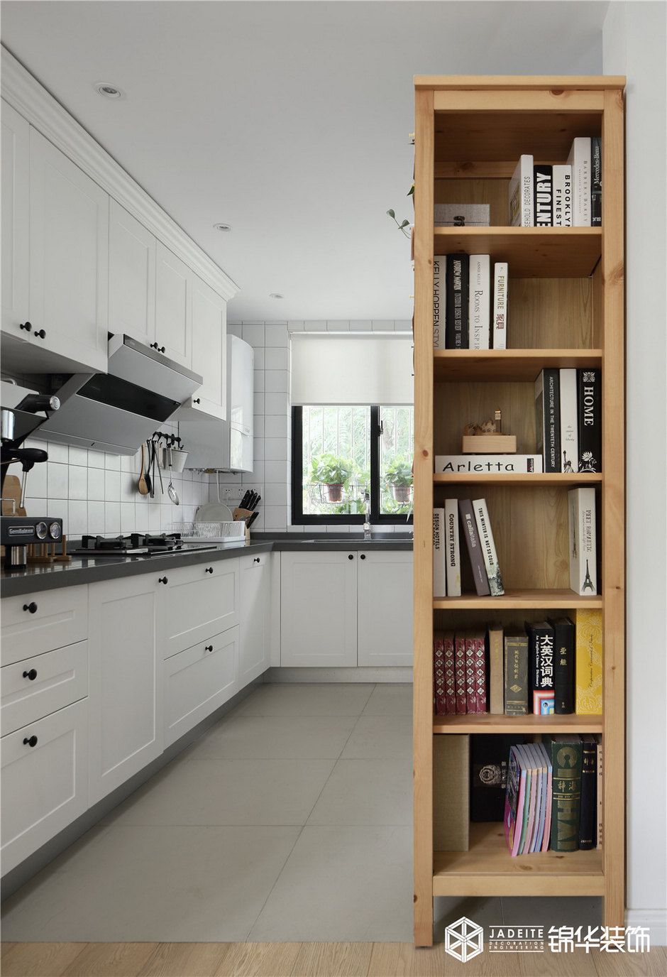 廚房敞開的設(shè)計(jì),讓空間顯得沒有那么的局促,上方的壁櫥大大增加了收納功能。