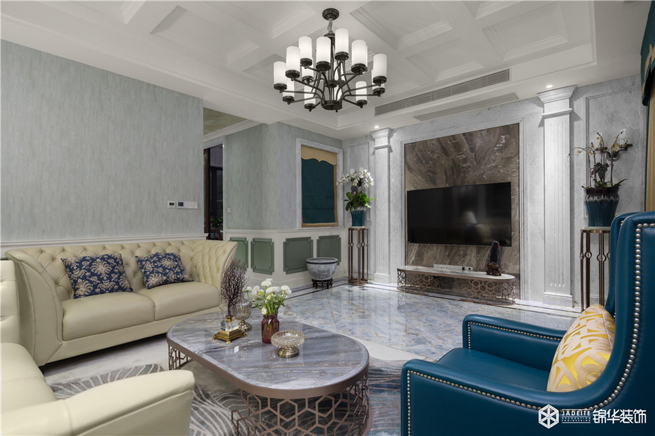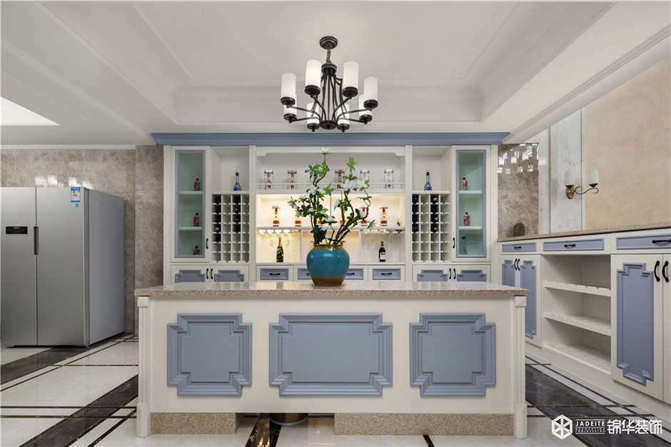 設(shè)計(jì)師:是的,業(yè)主那會看了挺多的效果圖以及實(shí)景照片,但沒有一個清晰的概念,說特別喜歡哪一個。巧的是,那會廣州正好有一個設(shè)計(jì)展和家具展,我們就去了。展會上,客戶特別喜歡一款沙發(fā)的樣式,所以我們就根據(jù)這個思路,找到了本案的設(shè)計(jì)風(fēng)格——美式鄉(xiāng)村。