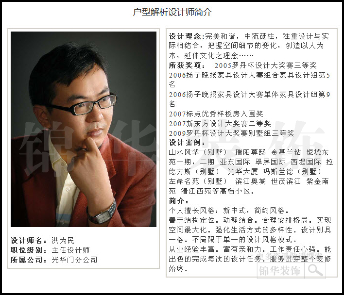 | 走進(jìn)錦華 | 設(shè)計(jì)團(tuán)隊(duì) | 作品列表 | 戶型解析 | 裝修百科 |