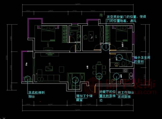 戶型缺點:但是餐廳和廚房的關系過于松散,北面的工作陽臺有點浪費,儲藏空間偏小,衛(wèi)生間過大。