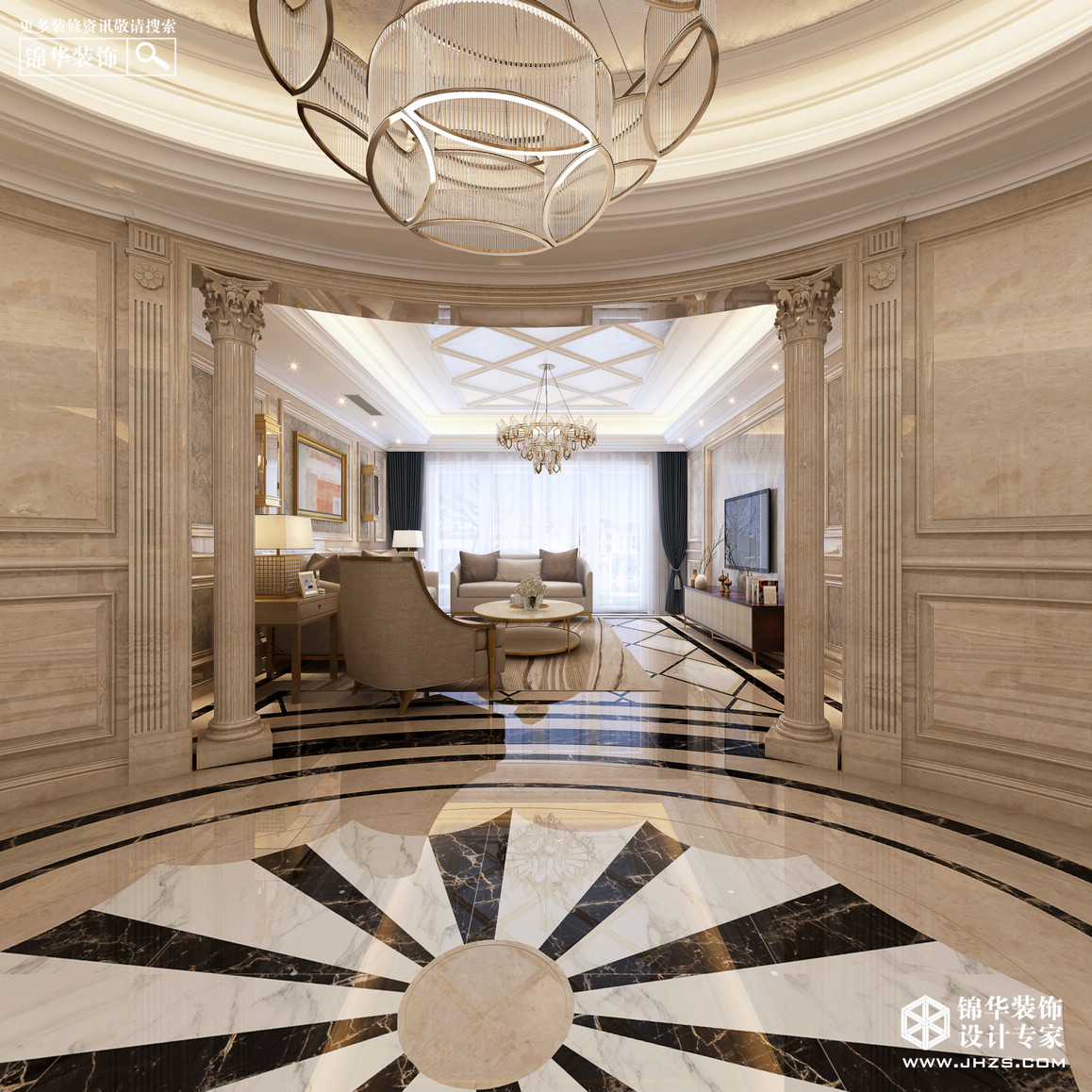 設(shè)計(jì)說明:本案作品將浪漫優(yōu)雅的歐式和古典的法式精美的結(jié)合在一起。業(yè)主是位追求完美的人,喜歡歐式的羅馬柱和石材,所以設(shè)計(jì)師根據(jù)業(yè)主的想法也在一些細(xì)節(jié)方面做了精致的處理,從簡(jiǎn)單到復(fù)雜、從整體到局部,精雕細(xì)琢,使各個(gè)空間的過度都顯得非常自然和諧。搭配歐式的家具,讓空間兼容華貴典雅與時(shí)尚現(xiàn)代,米黃色的整體色調(diào),無不彰顯著生活的富足安寧和業(yè)主對(duì)品質(zhì)生活的向往與追求。